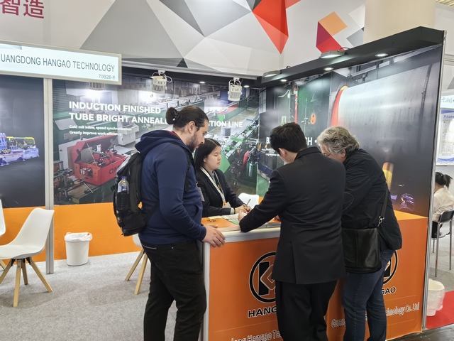 漢高科技亮相展會,與全球各地的不銹鋼制管企業進行技術交流。