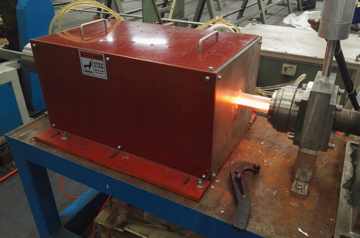 漢高科技經過多年的努力和創新開發,使用目前先進的感應加熱技術和DSP電源。精確控制加熱溫度,保證溫度控制在+2°C,解決了感應加熱溫度控制不準確的技術難題。加熱后的鋼管在一個專門的密閉冷卻隧道內通過“熱傳導”方式進行冷卻,大大減小氣體用量,更加環保。